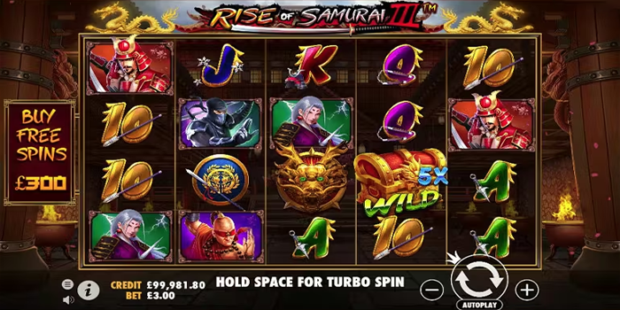 Slot Rise Of Samurai 3, yang menghadirkan tema samurai klasik, simbol khas Jepang, animasi yang memukau, dan fitur bonus interaktif.